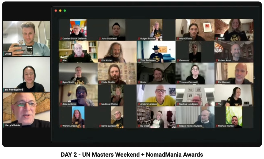 This was not an easy target to reach, and the Awards and Events sub-committee, comprised of Lucy Hsu, Dondon Bales and our founder Harry Mitsidis, had more work on their plate than they anticipated, as did the NomadMania Team tasked with the administration of it all. But the response was great – most people thought this was a wonderful idea and immediately accepted the invitation. Those who didn’t were mainly travelling on those dates and didn’t know whether they would have reliable online access.