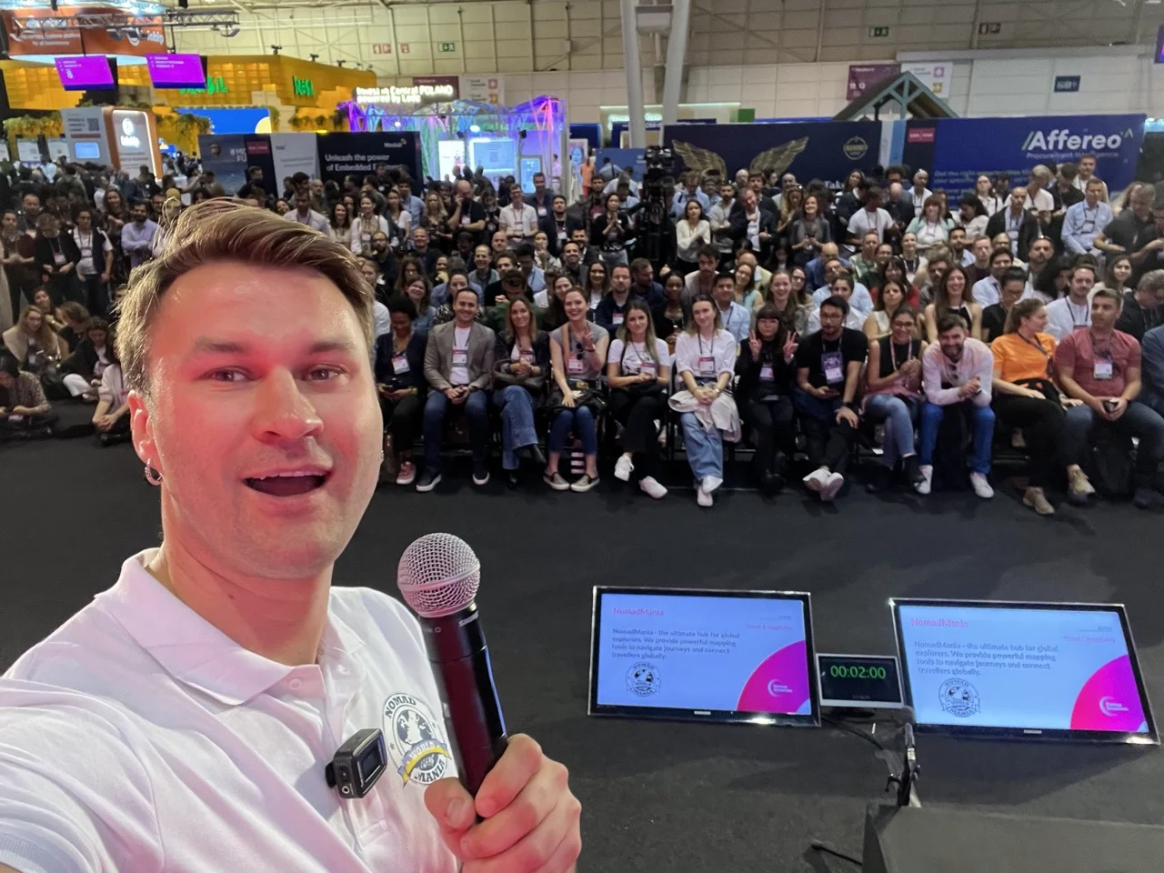 Additionally, we presented NomadMania at the startup showcase session, speaking from the big stage to hundreds of people live.