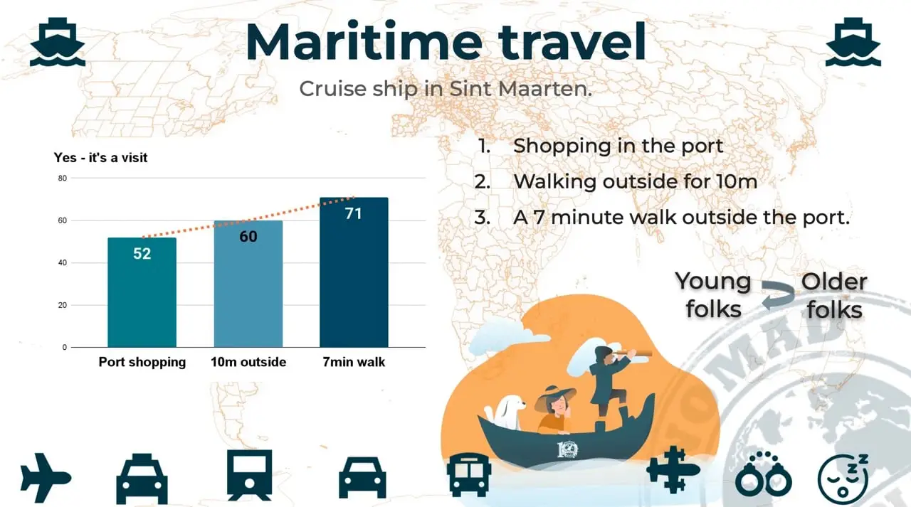 One concerned the respondents’ age and we have the two extremes here – travellers below 34 years old and travellers above 55 years old. These both groups were to show a slight divergence in terms of percentage of results, with older travellers tending to be more inclined to accept visits.