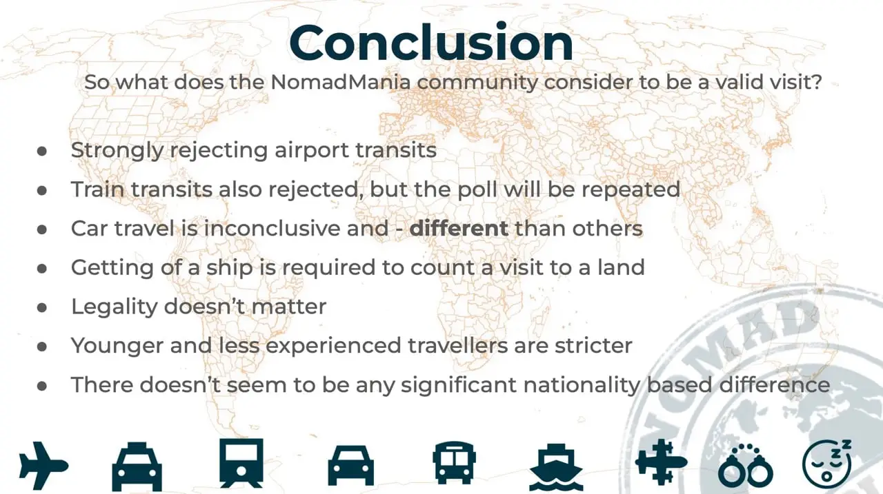 In conclusion, and perhaps rather surprisingly, we can say that the poll reveals that younger and less experienced travellers tend to be more concerned with a certain level of experience in travel – if this is achieved, they are more likely to count it as a visit including if there is no ‘stepping’ into the region. Older and bigger travellers tend to focus more on the ‘technical’ aspects of a visit – as long as a foot touches the ground, they are more likely to accept a visit even if very little has been experienced.